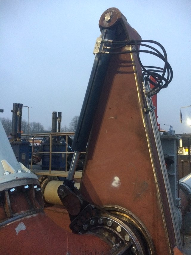 On behalf of and in close collaboration with a shipyard we developed an hydraulic system for the more than 180 degrees tilting of a loading pipe by means of two hydraulic cylinders. After the installation and commissioning of the loading pipe we checked the adjustments of the entire hydraulic system on board on behalf of the shipowner and we made an up to date hydraulic diagram with parts list.