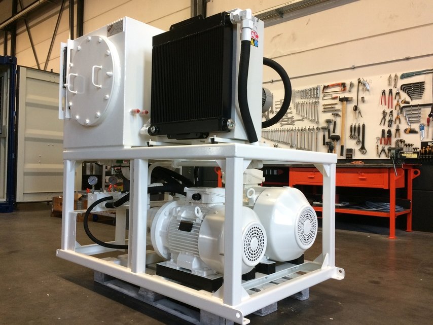 Voor een wereldwijde marktleider in het produceren en leveren van bulkhandling machines leveren wij regelmatig hydraulische powerpacks in een grote diversiteit qua afmetingen, vermogens en uitvoeringen. Deze machines worden wereldwijd geëxporteerd, dus de powerpacks moeten dan ook voldoen aan diverse eisen en geschikt zijn voor de lokale spanningen en frequenties. Het betreft vaak custom built machines, dus ook de powerpacks en eventueel bijbehorende systemen worden door ons in nauwe samenwerking met de klant ontworpen, samengebouwd, aangesloten en in bedrijf gesteld.